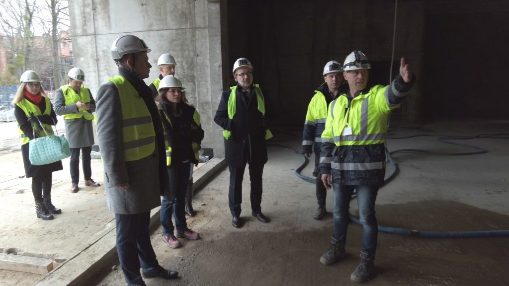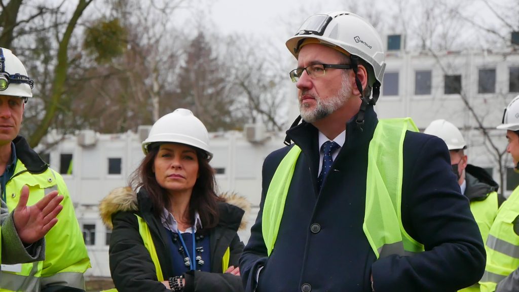Minister Zdrowia miał okazję zobaczyć budowę pierwszego modułu, gdzie zlokalizowany będzie szpitalny oddział ratunkowy, blok operacyjny (15 sal operacyjnych) oraz 50-stanowiskowy oddział anestezjologii i intensywnej terapii.