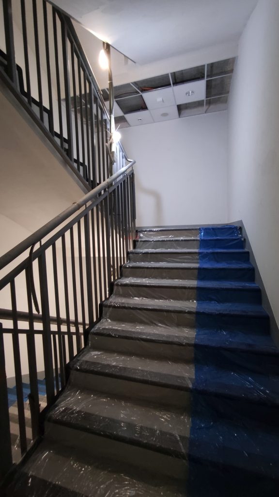 W najbliższym czasie zostaną ukończone prace związane z montażem okablowania kontroli dostępu. Aktualnie trwa montaż czytników oraz podłączanie kontrolerów. Udało się również uruchomić 15 centrali wentylacyjnych w obrębie obiektu. Do końca zbliżają się także prace związane z układaniem paneli szklanych i nierdzewnych na ścianach sal operacyjnych oraz montaż automatyki do drzwi wykonanych ze stali nierdzewnej.